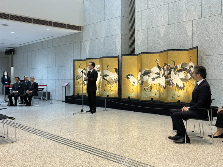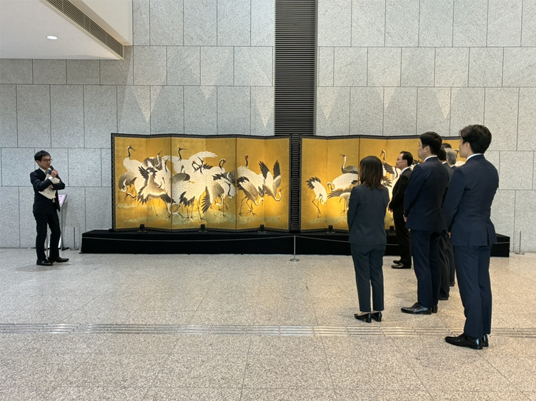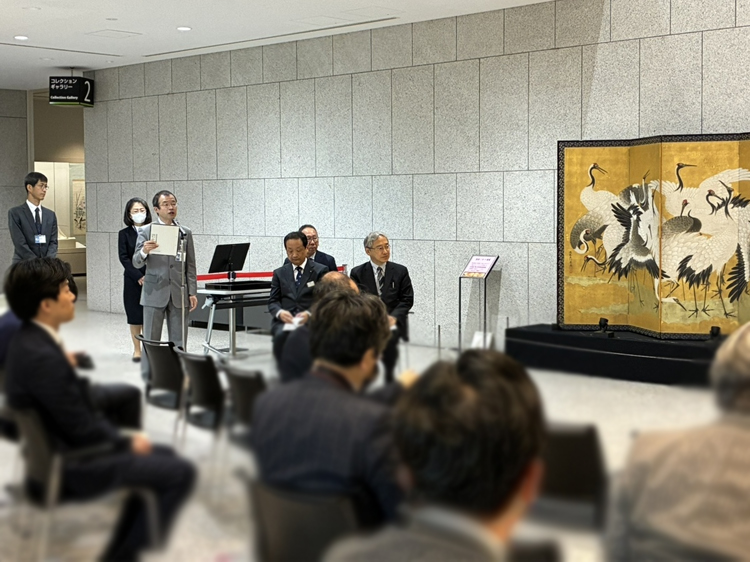 On February 25, 2026, the Tsuzuri Project (officially, the Cultural Heritage Inheritance Project), jointly promoted by Canon Inc. and the Kyoto Culture Association (NPO), donated to the Hyogo Prefectural Museum of History a high-resolution facsimile of Flock of Cranes, a pair of six-panel folding screens painted on gilded paper by Yūtei Ishida.